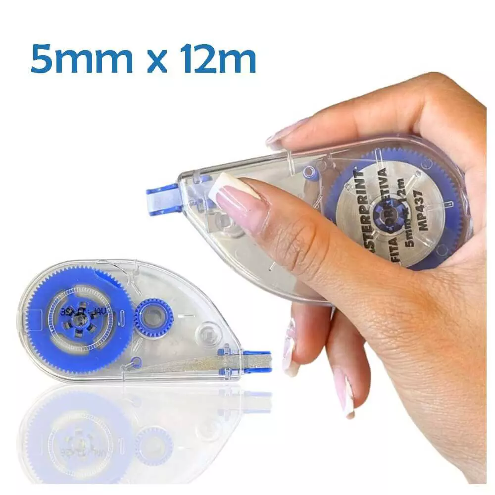 A fita corretiva MP437 vai salvar o seu trabalho, proporciona correção a seco sem necessidade de esperar secar para escrever por cima. Ideal para o uso sobre todos os papéis para corrigir fotocópia, fax, impressão de computador e tinta de esferográfica, caneta de ponta porosa, roller ball e destaca-texto.