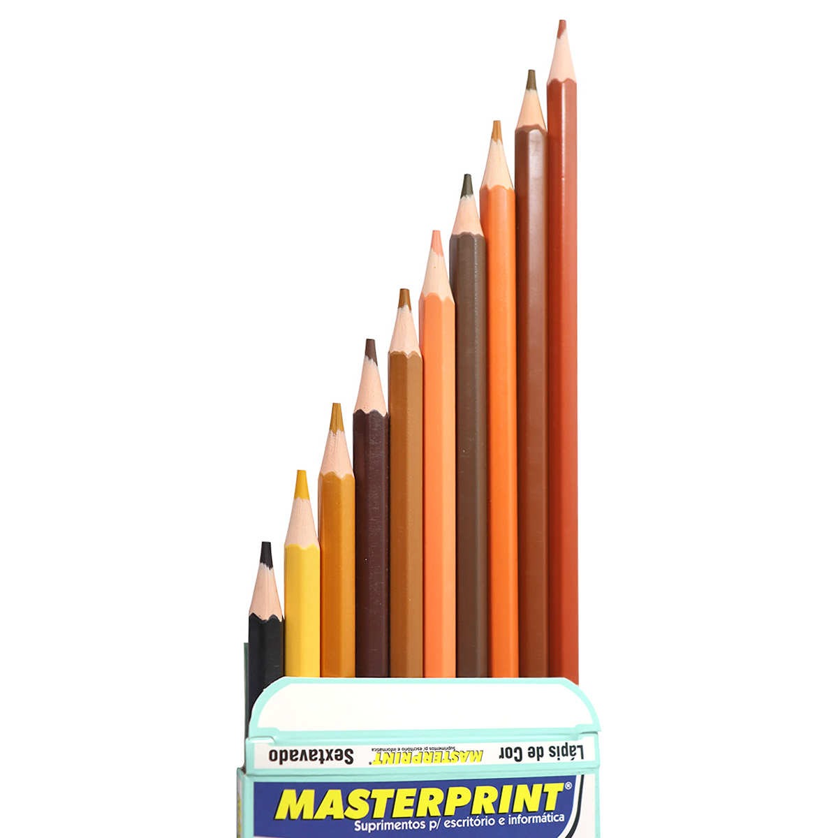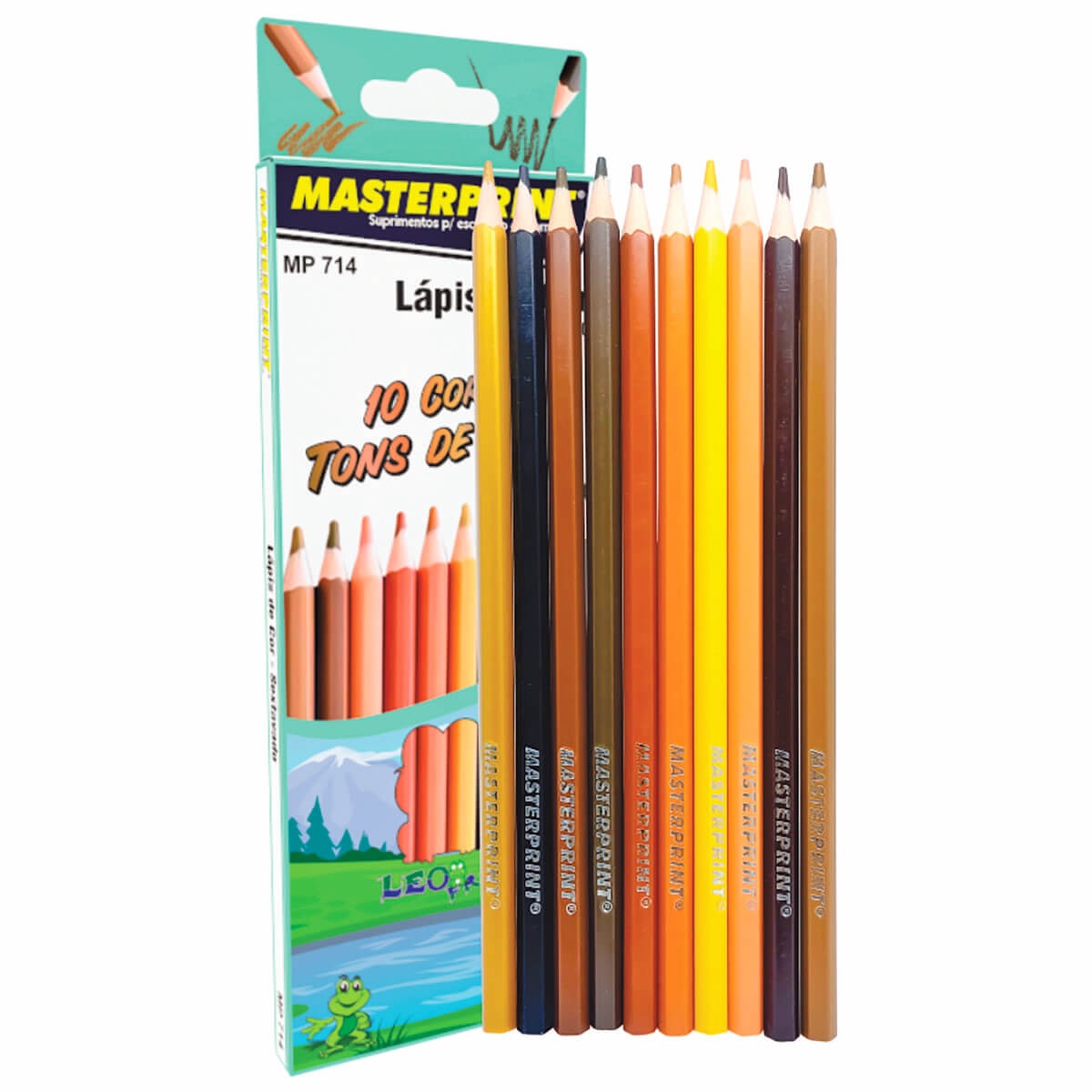 Caixa de lápis de cor contendo 10 lápis, totalizando 10 cores tons de pele.